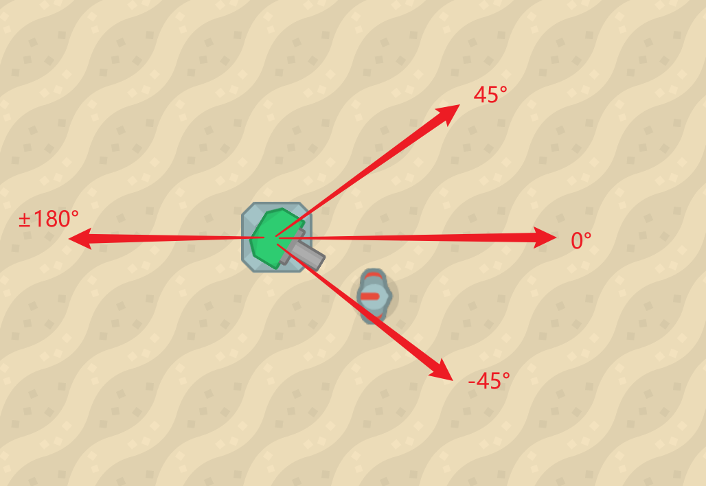 update(deltaTime: number) { const dx = this.enemy.position.x - this.tower.position.x const dy = this.enemy.position.y - this.tower.position.y const radian = Math.atan2(dy, dx) const angle = (radian * 180) / Math.PI console.log(angle) this.tower.angle = angle } }